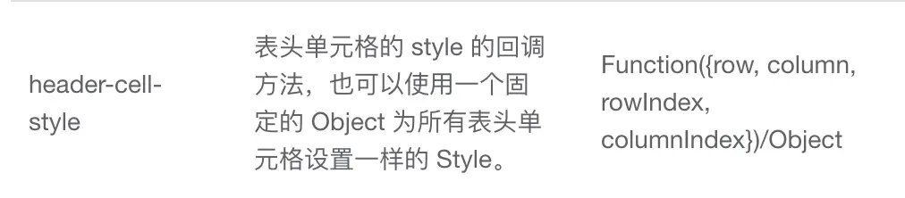 tableHeaderCellStyle ({row, column, rowIndex, columnIndex}) {