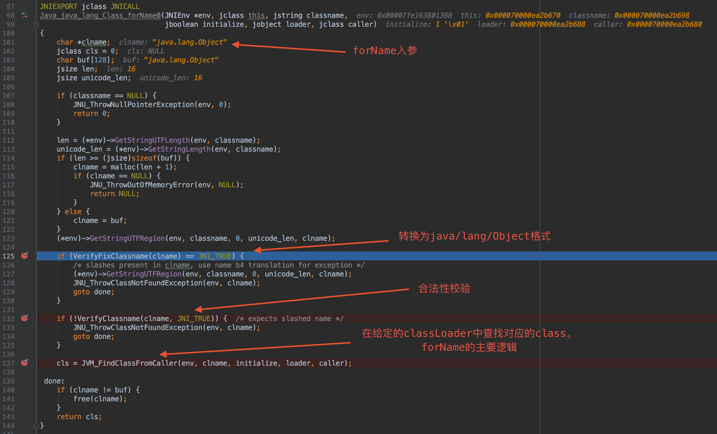 Class.forName中的主要逻辑都位于native方法forName0中,我们结合openJdk的源码,看一下其中都做了什么。