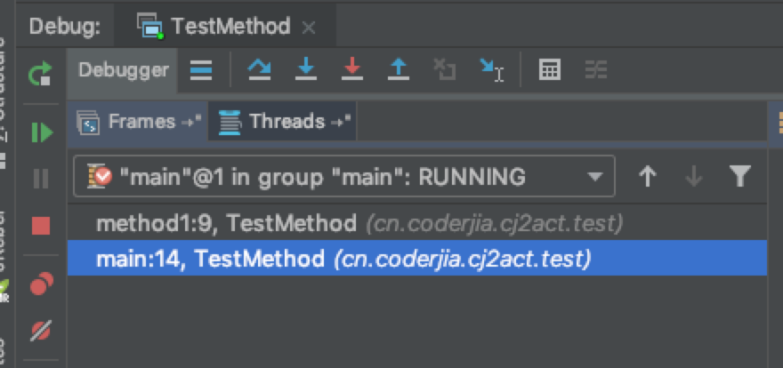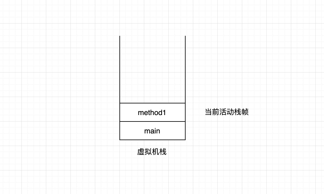 上面代码我们在method()1时,打个断点。public class TestMethod { public void method1() { StackTraceElement[] stackTrace = new RuntimeException().getStackTrace(); } public static void main(String[] args) { TestMethod target = new TestMethod(); target.method1(); } } 当前虚拟栈的信息可以如下图所示:
