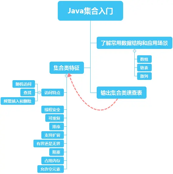 最后,根据Java集合类的特征,整理并输出一个速查表,在使用时根据各个特征快速过滤,就可以得到要使用的集合类。