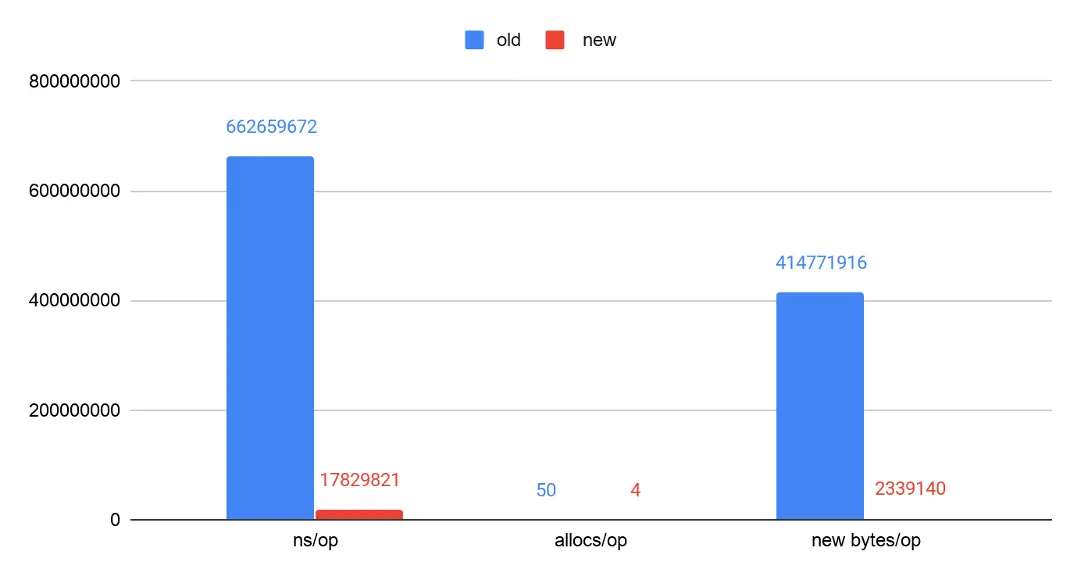 在我们简单测试场景中 100w regions 对比中,API 的整体性能提升了 3.5 倍,尤其是 Hot Path 上的 RenderJSON() 函数,其运行时间和内存开销都被大大减小,前后对比的 benchmark 结果如下图所示: