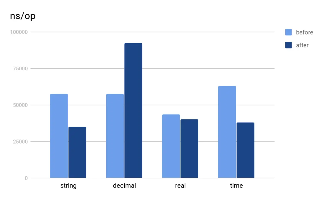 后续程鹏帮助我们把优化后的 vecGroupChecker 用在了 Window 和 Stream Aggregate 算子内,另一位同学 Catror 把它用在了 Merge Join 算子内,都对这三个算子产生了很大的性能提升。