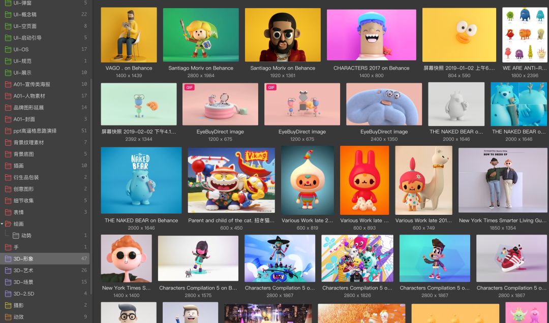 说下图片素材,我基本都放在eagle了,里面的分类也是按照自己比较习惯的方式来整理的: