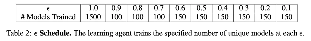 的探索阶段训练大量的网络,其它值则保证代理在压榨前有充足的时间来继续探索,在