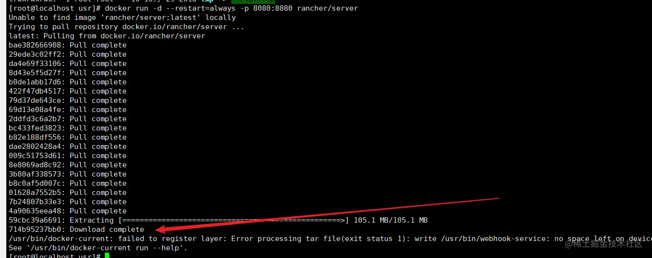 - 后面跟的镜像名 rancher/server ,Docker 会首先检查本地有没有这个镜像,如果没有,Docker 会去 Docker Hub 将这个镜像下载下来,并且启动。