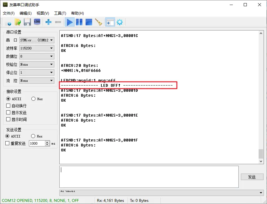 下发“off”命令:
