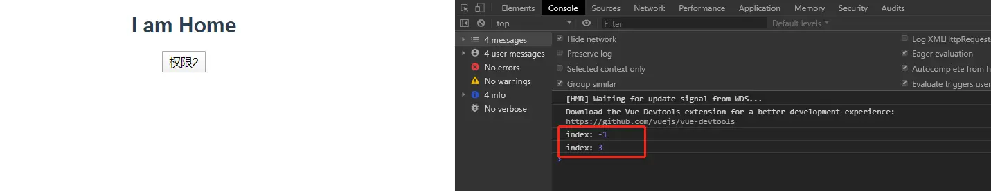 可以看到 v-permission = "'10'"是没有权限且不显示,v-permission = "'5'"是具有权限且显示