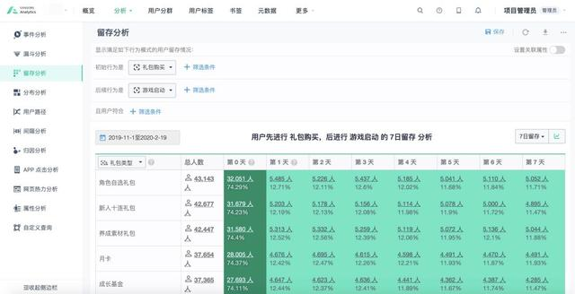 针对游戏行业的用户留存情况有个普遍共识是有过付费行为的客户,整体在用户留存情况上会比总体高,但是游戏中的付费点有很多,如首冲、月卡、礼包等,百田公司的产品、运营团队希望明确地分析出哪种付费方式有助于留存提升,包括相应的渠道差异情况。