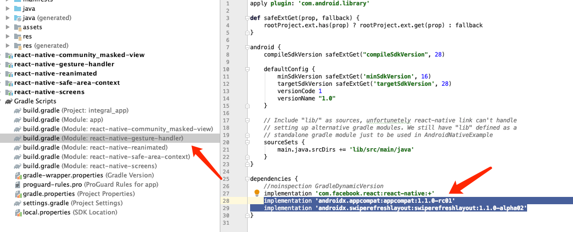 在build.gradle(module: react-native-gesture-handler)这个文件上面增加implementation