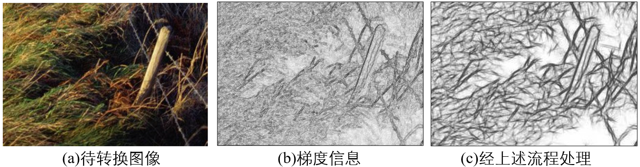 沿给定方向进行卷积平滑,能够连接原始梯度图中不相连的边缘像素。经逆向处理并归一化至[0,1]后得到输出线条图