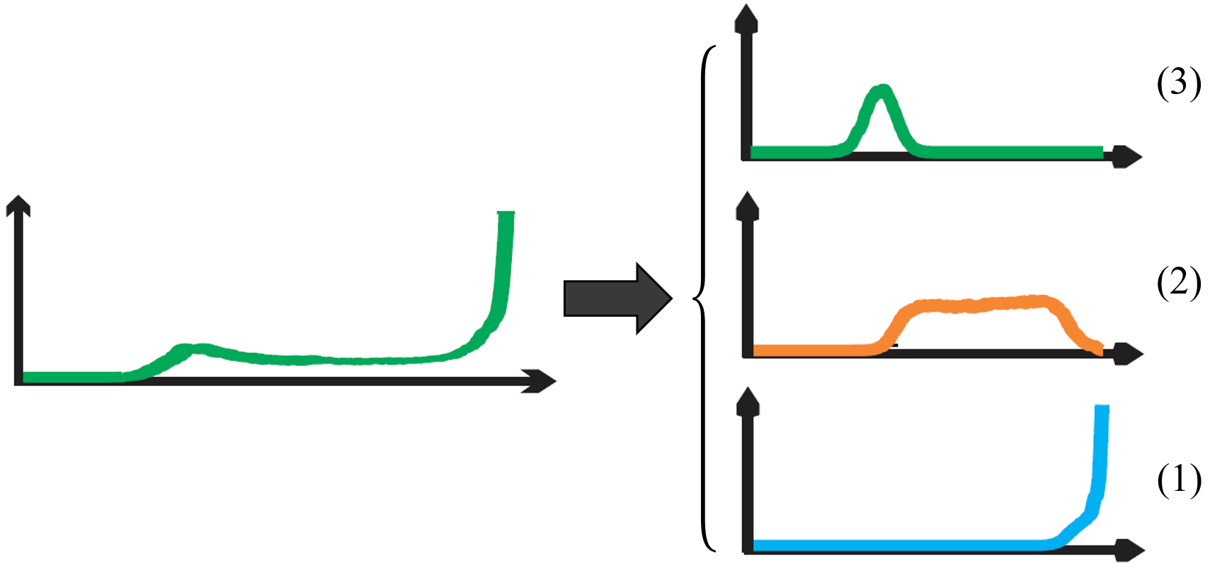 现在大家来观察一下(1)(2)(3)的曲线形状,如果让你来用你见过最像的函数拟合这三条曲线,你会如何选择。