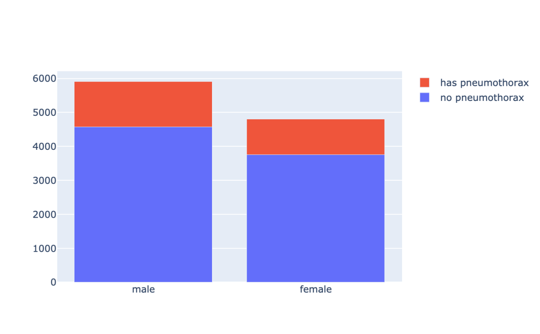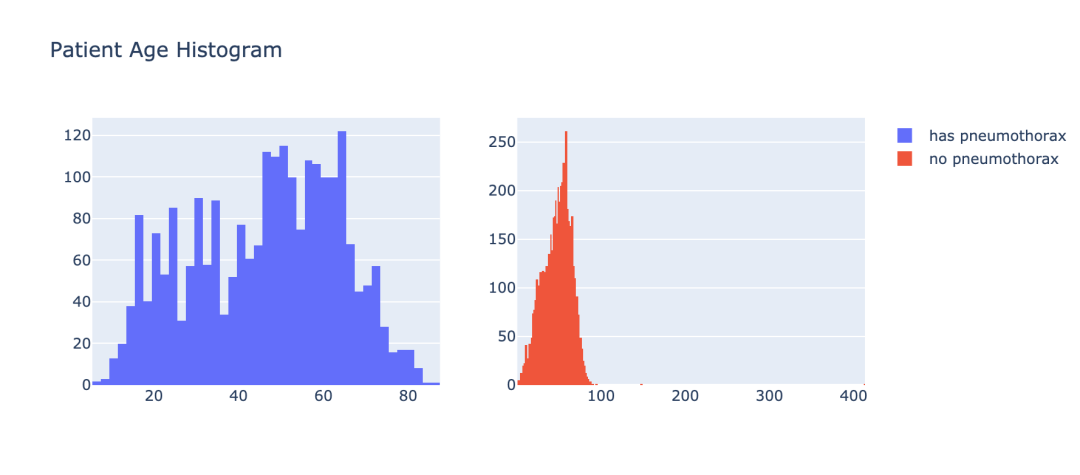 在训练数据中,如果胸片没有被 mask 标记,表示这个病例他并不患有气胸。通过 EncodedPixels 中的数据,将是否是气胸的患者记录到 has_pneumothorax 这一字段中。