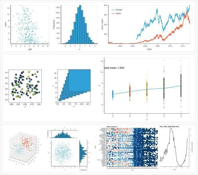 Bokeh提供了一个强大的平台,通过结合Bokeh提供的交互式小部件,可以使用HTML5 canvas和WebGL快速生成交互性和高维可视化,非常适合于数据的交互式探索。