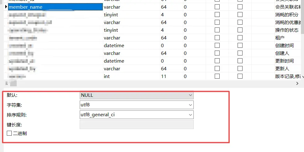2.如果只是某个字段需要 只需要修改那个字段的字符集就可以了