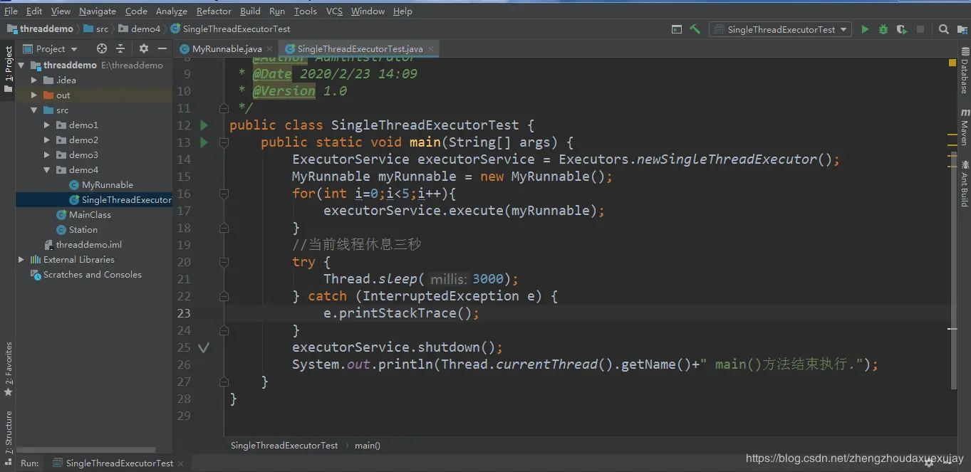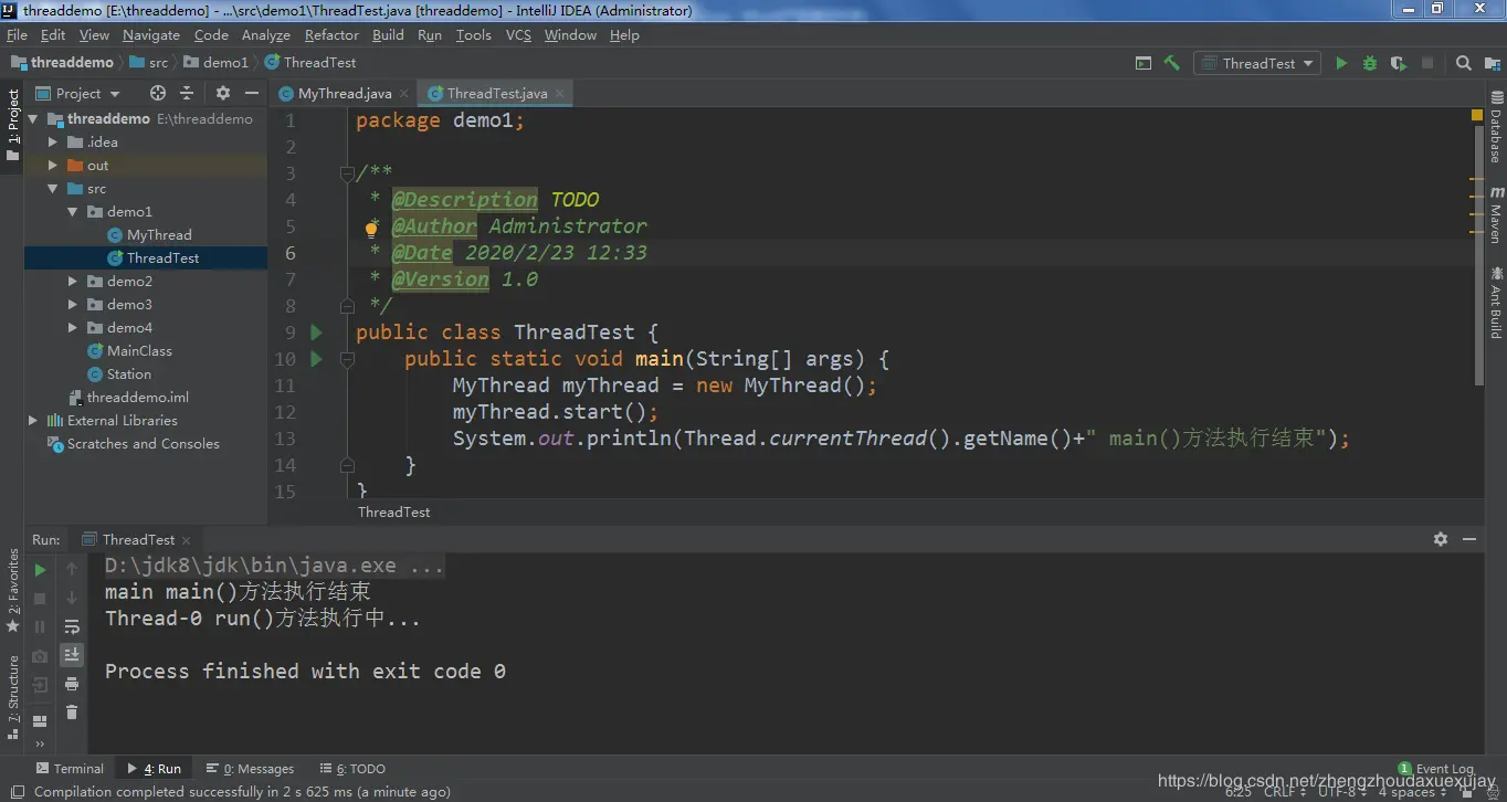 System.out.println(Thread.currentThread().getName()+" 线程的run()方法执行结束");