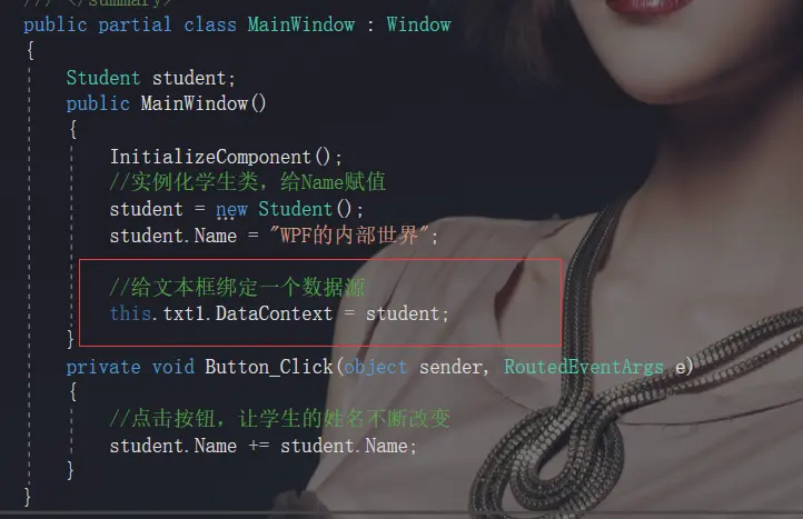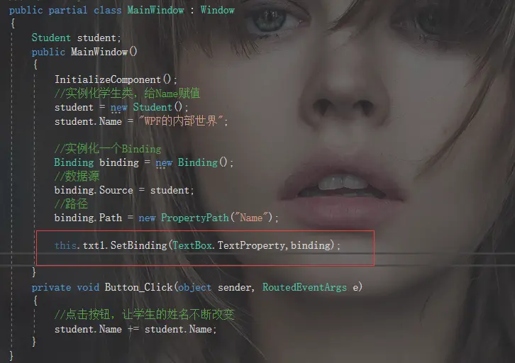 - 应该是为TextBox的属性Text关联(Binding)了一个数据源,可以把这看成一个 Binding的构造函数,相当于初始化Binding