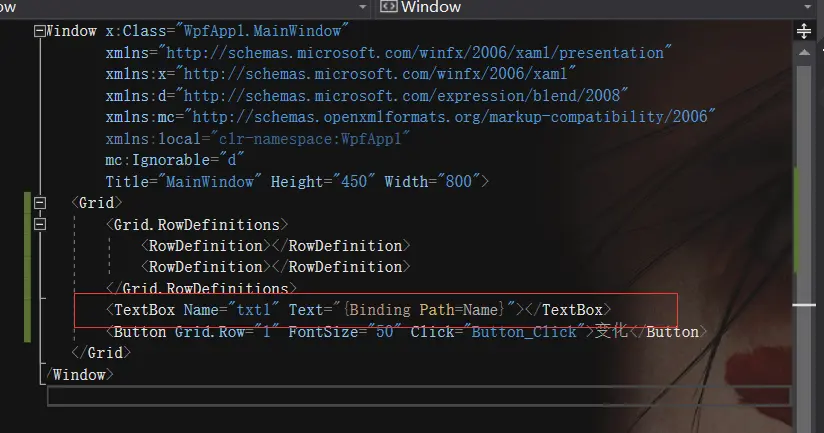 一、首先,我们在页面放置一个文本框和一个按钮,要实现点击按钮时:文本框的内容随着Binding的属性的值改变而发生改变。