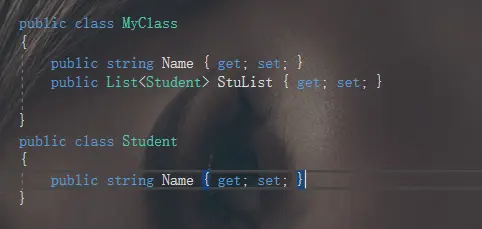 我们在创建一个班级类,班级类有一个Name属性,还有一个Student集合,代表有多个学生。