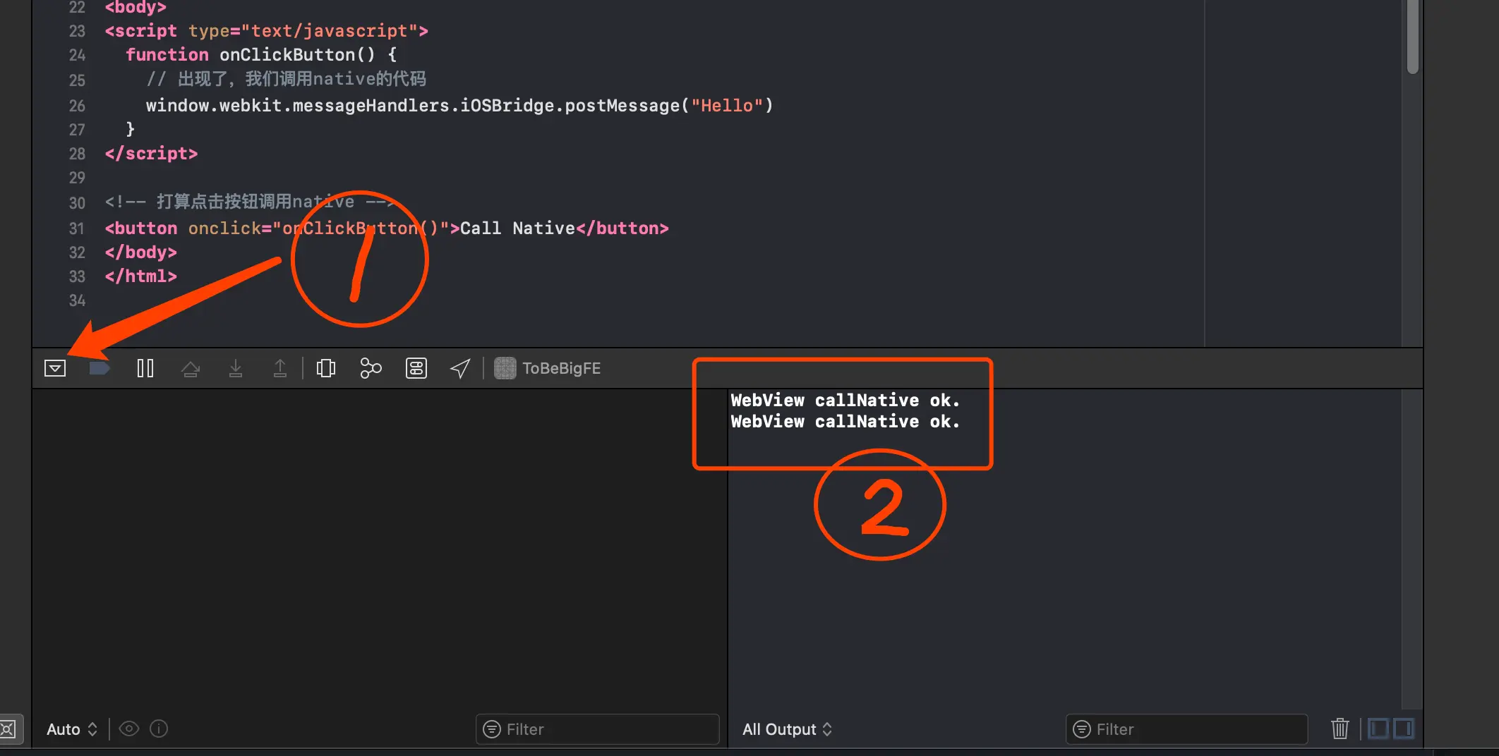 运行后,多点几次 Call Native 按钮就会得到第 2 点的输出,说明你已经完成了JS调用Native。
