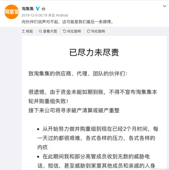 中小企业款项被拖欠,早已不是新鲜事。生鲜电商平台呆萝卜、社交电商平台淘集集,都曾在2019年下半年被曝出拖欠供应商资金。