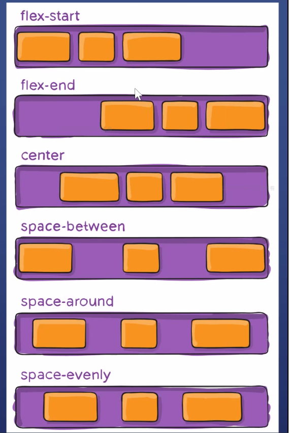 space-around和space-evenly的区别是,前者是元素两边空间一样大,后者是4个空隙大小一样大