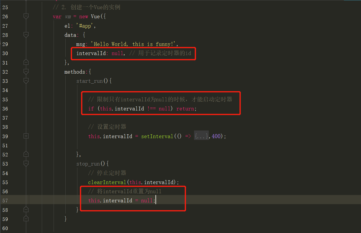 那么这时候就要做一些判断来限制启动定时器,并且关闭定时器之后,需要重置一下定时器id为null。