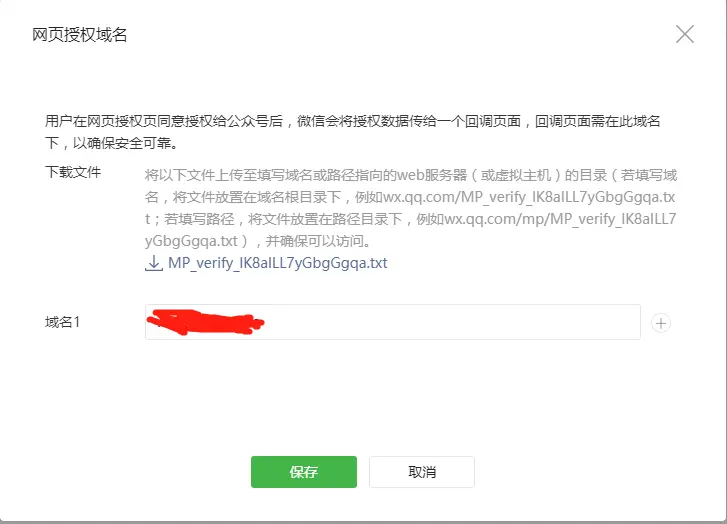 但是在设置网页授权回调前,需要确保设置的域名能访问到MP_verify_.txt 文件,例如http://www.abc.com/MP_verify_wleifiw23438.txt能够使用浏览器访问,请把MP_verify_.txt 文件访问域名根目录下