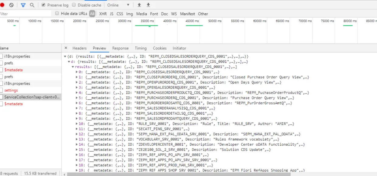 我们在SAP WebIDE里使用Create from template菜单项,通过创建向导新建Fiori应用时,也是通过这个catalog service来完成。从Service Catalog里选择一个Destination后,就会看到该Destination指向的SAP gateway系统里所有暴露的OData服务: