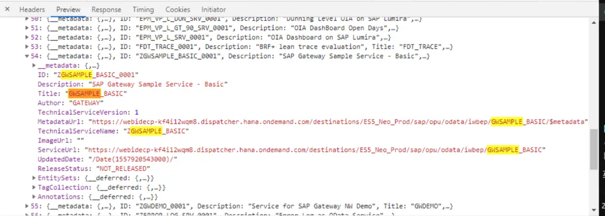 浏览器里访问,能看到这个gateway系统里暴露出的所有OData服务: