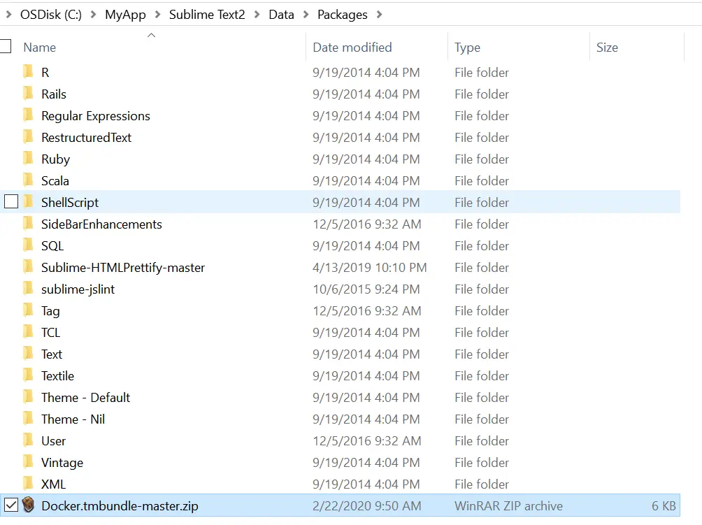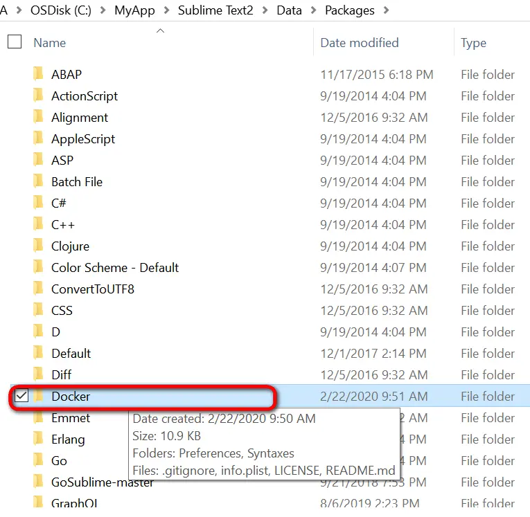 会自动打开该应用存放插件的文件夹,将之前从github仓库下载的Dockerfile语法高亮的压缩包拷贝过来,解压: