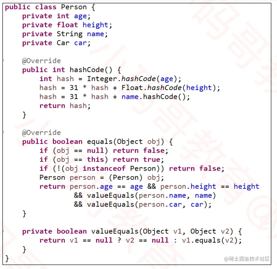 hashCode函数,我们将对象所有属性都计算进来,这样即充分利用所有信息计算出了哈希值。 - 当