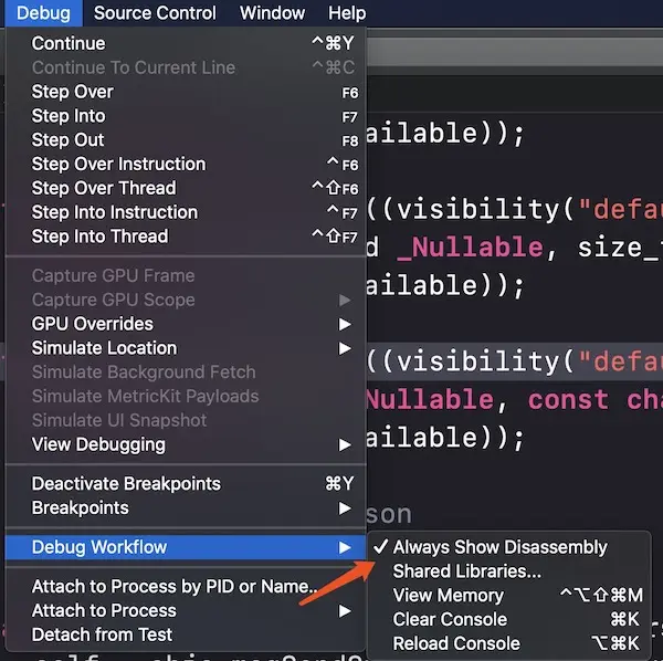 首先我们在XLPerson的init函数中打个断点,然后在main函数中创建XLPerson对象,并且打开Xcode以下设置