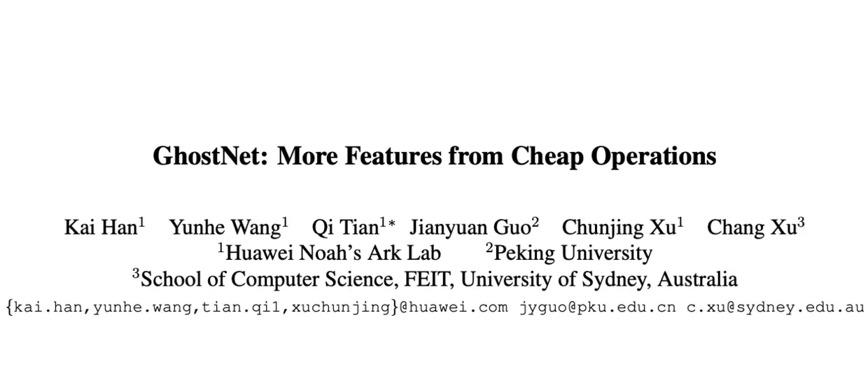 一般都很大。公式1的参数量与输入和输出的特征图数息息相关,而从图1可以看出中间特征图存在大量冗余,且存在相似的特征(Ghost),所以完全没必要占用大量计算量来计算这些Ghost
