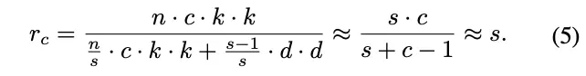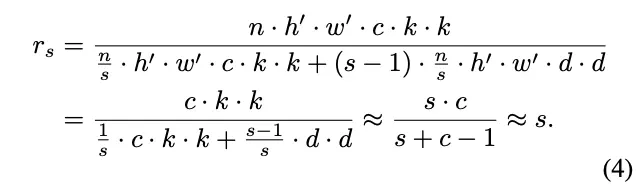 假设Ghost模块包含1个identity mapping和个线性操作,每个线性操作的核大小为