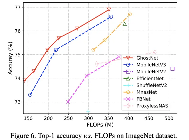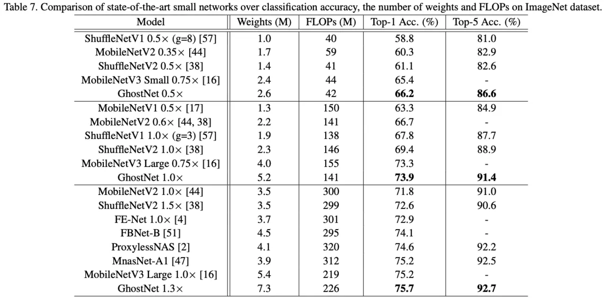 值进行调整,整体而言,GhostNet最轻量且准确率最高