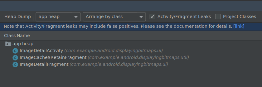 根据反馈,我们在内存探查器中添加了检测可能泄漏的活动和片段实例的能力。要开始使用,请在内存探查器中捕获或导入堆转储文件,并选中"活动/碎片泄漏"复选框以生成结果。有关 Android Studio 如何检测泄漏的详细信息,请参阅我们的文档。