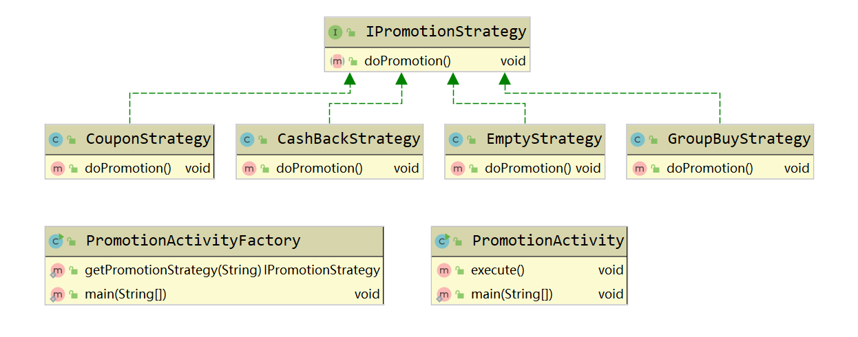 修改代码之后维护工作应该轻松了很多,每次上新活动,不会影响原来的代码逻辑。来看一下完整的类图: