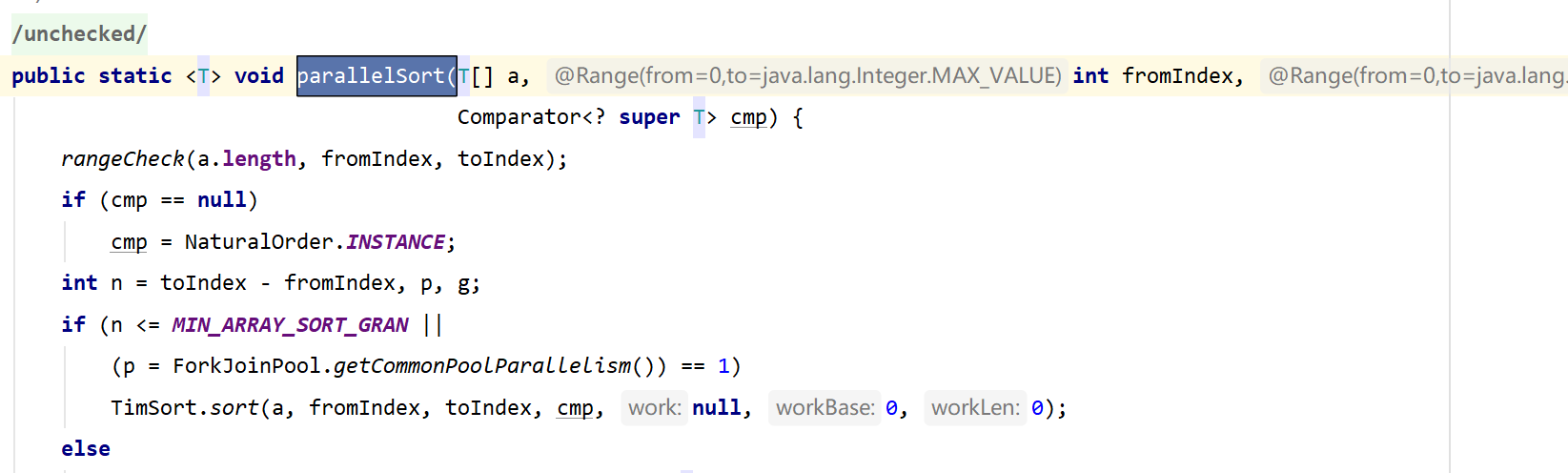 Comparator 接口下面有非常多的实现类,我们经常会把 Comparator 作为参数传入作为排序策略,例如 Arrays 类的 parallelSort 方法等: