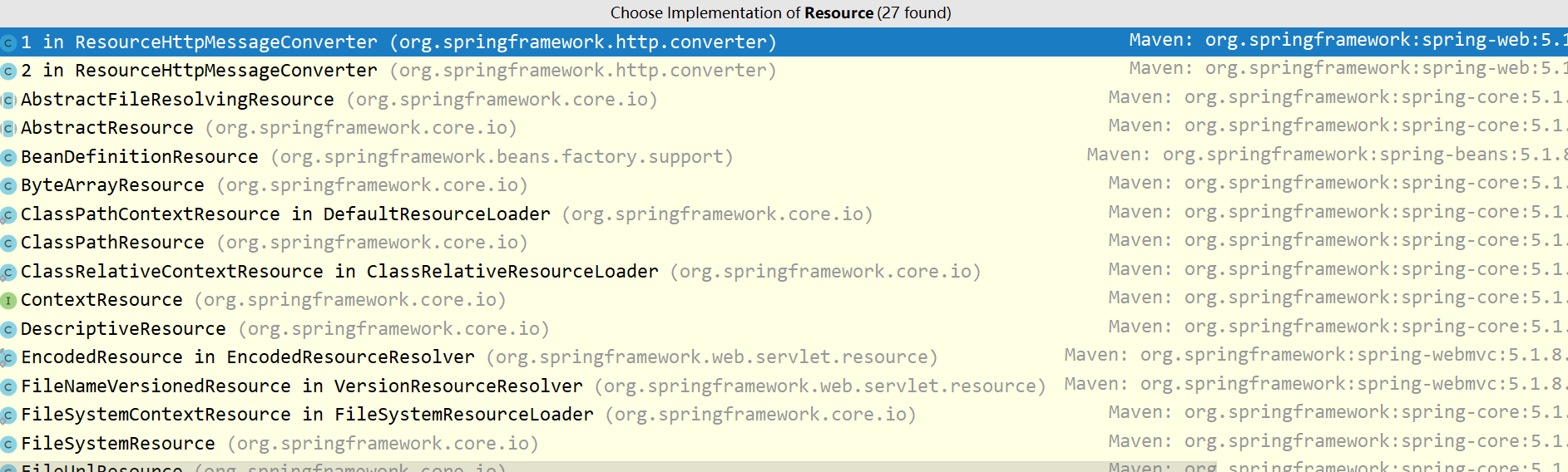 我们虽然没有直接使用 Resource 类,但是我们经常使用它的子类,例如:
