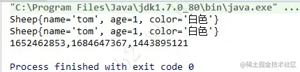 System.out.println(sheep.hashCode()+","+sheep1.hashCode()+","+sheep2.hashCode());
