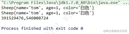 System.out.println(sheep.hashCode()+","+sheep1.hashCode());