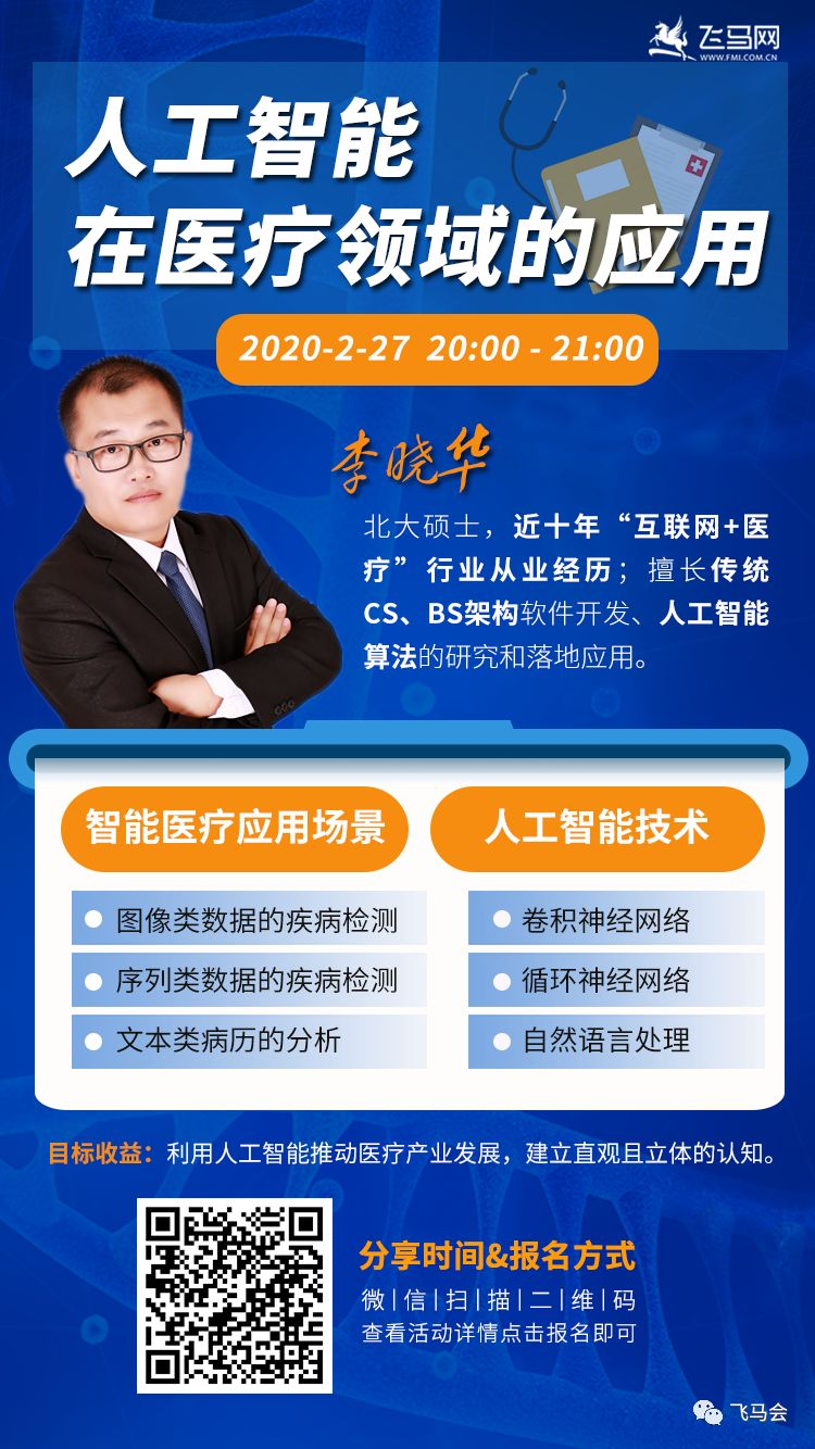 点击报名2月27日【线上直播】人工智能在医疗领域的应用