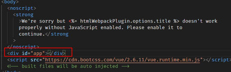 - Vue 非完整版实例 非完整版的视图不能直接写在 html 中,如图,div 标签里是空的。 如图:
