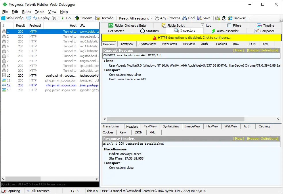 未做配置时,https请求在左侧也会显示为http,但是右侧会提示