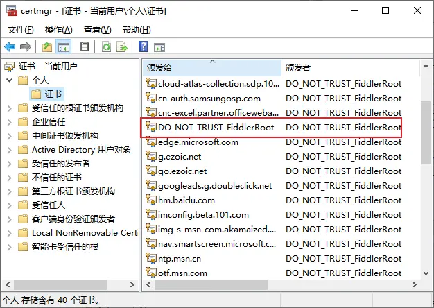 - 再按上述步骤配置,在证书中找到如图所示即说明成功