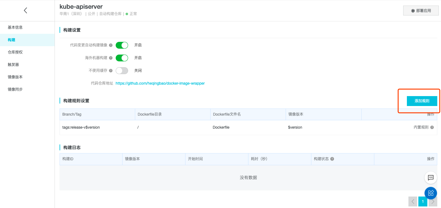 勾选『海外机器构建』,第一个自动构建镜像勾不勾选都可以,后面配置构建策略的时候可以更改。
