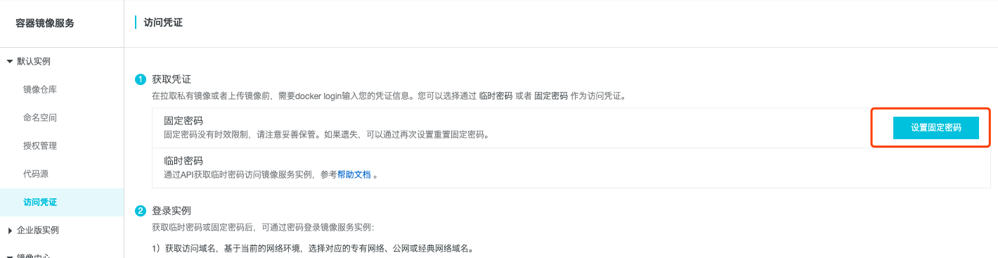 注意,第一步 docker login 的时候,需要输入的密码并不是阿里云的登录密码,而是这里单独设置的: