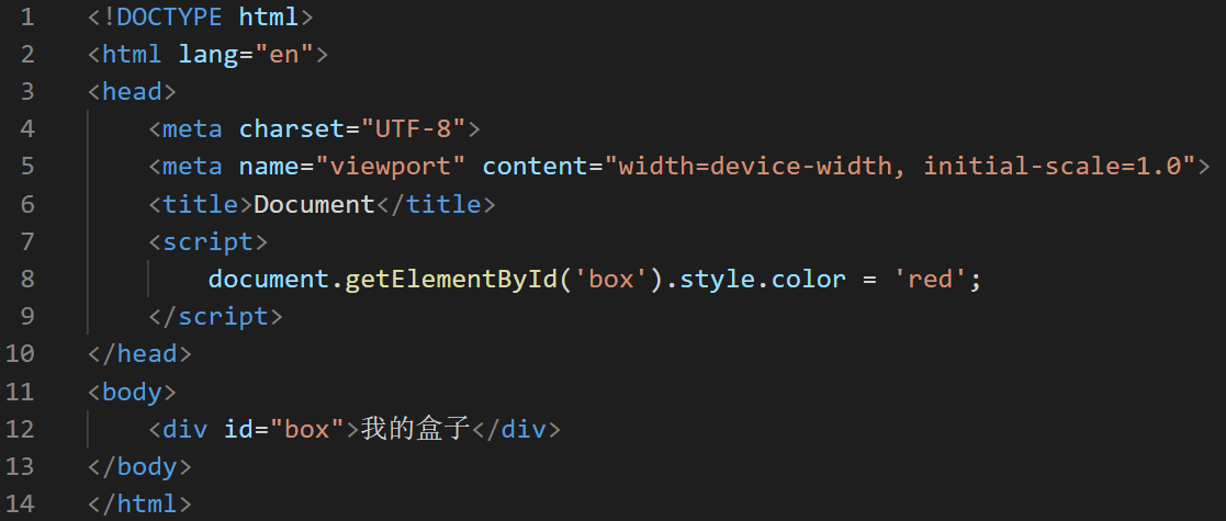 下图中在div元素节点构建之前就对该节点产生行为交互,document.getElementById()无法找到该dom节点,所以会报错。