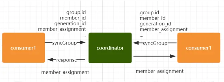 完成分区分配之后,就进入了 Synchronizing Group State阶 段 , 主 要 逻 辑 是 向 GroupCoordinator 发 送 SyncGroupRequest 请求,并且处理 SyncGroupResponse 响应,简单来说,就是 leader 将消费者对应的 partition 分 配方案同步给 consumer group 中的所有 consumer