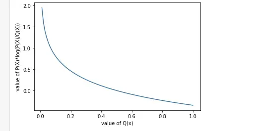 和我们预料的一样,函数随着的递增而递减。但是这只是一个x的取值,别忘了,我们相对熵计算的是整个分布,那我们加上另一个x的取值会发生什么呢?